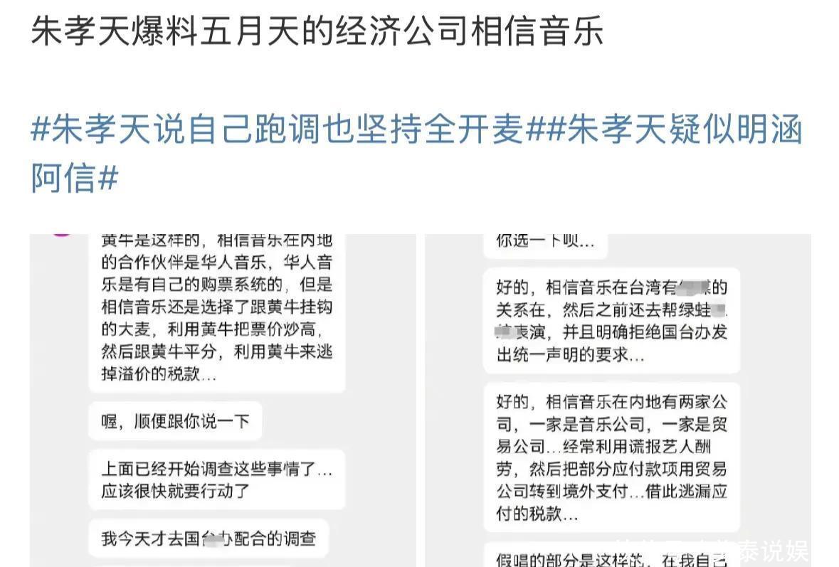 朱孝天又爆料出相信音乐疑似与黄牛有合作,故意炒高演唱会的门票价格等等一系列大瓜。