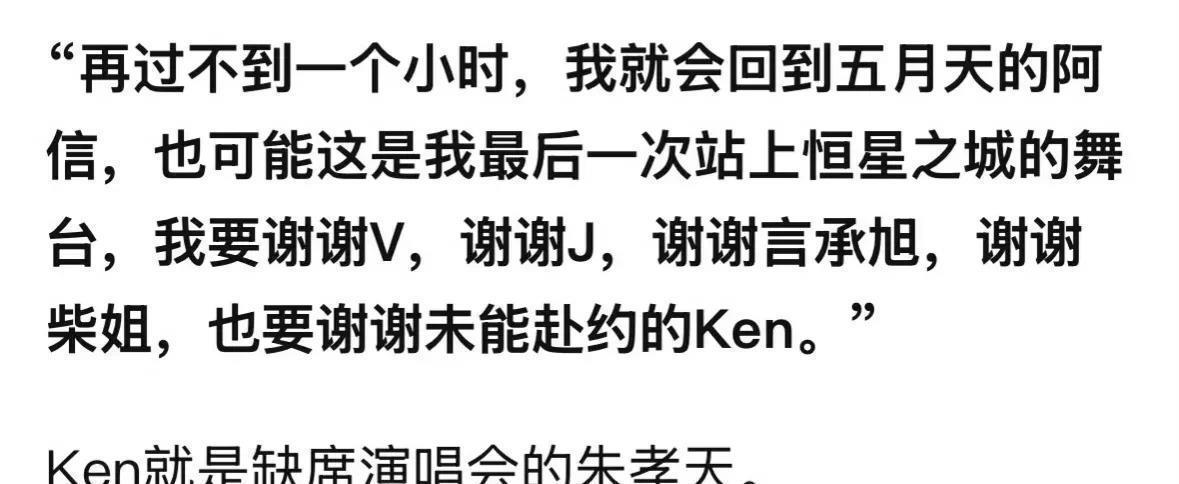 阿信在演唱会结束后还曾发文向朱孝天致谢,但朱孝天在粉丝群称这是阿信的场面话中,一直只会说,但从未接受任何的邀请。